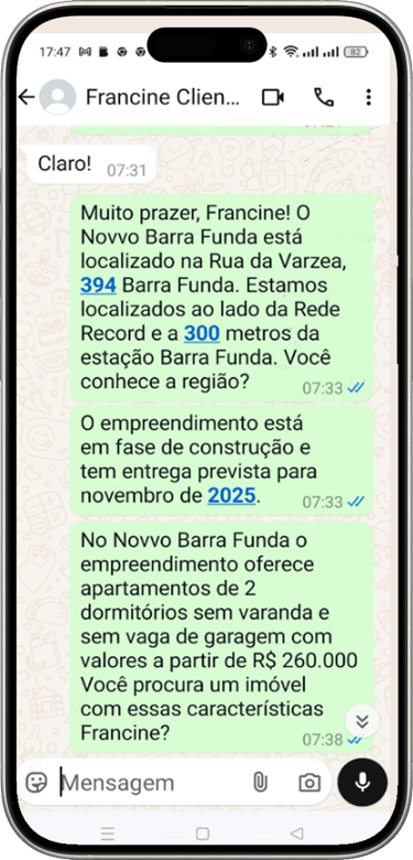 Consulte valores, data de entrega, imagens e condições de pagamento para o Vibra São Mateus com nosso assistente virtual com inteligência artificial.
